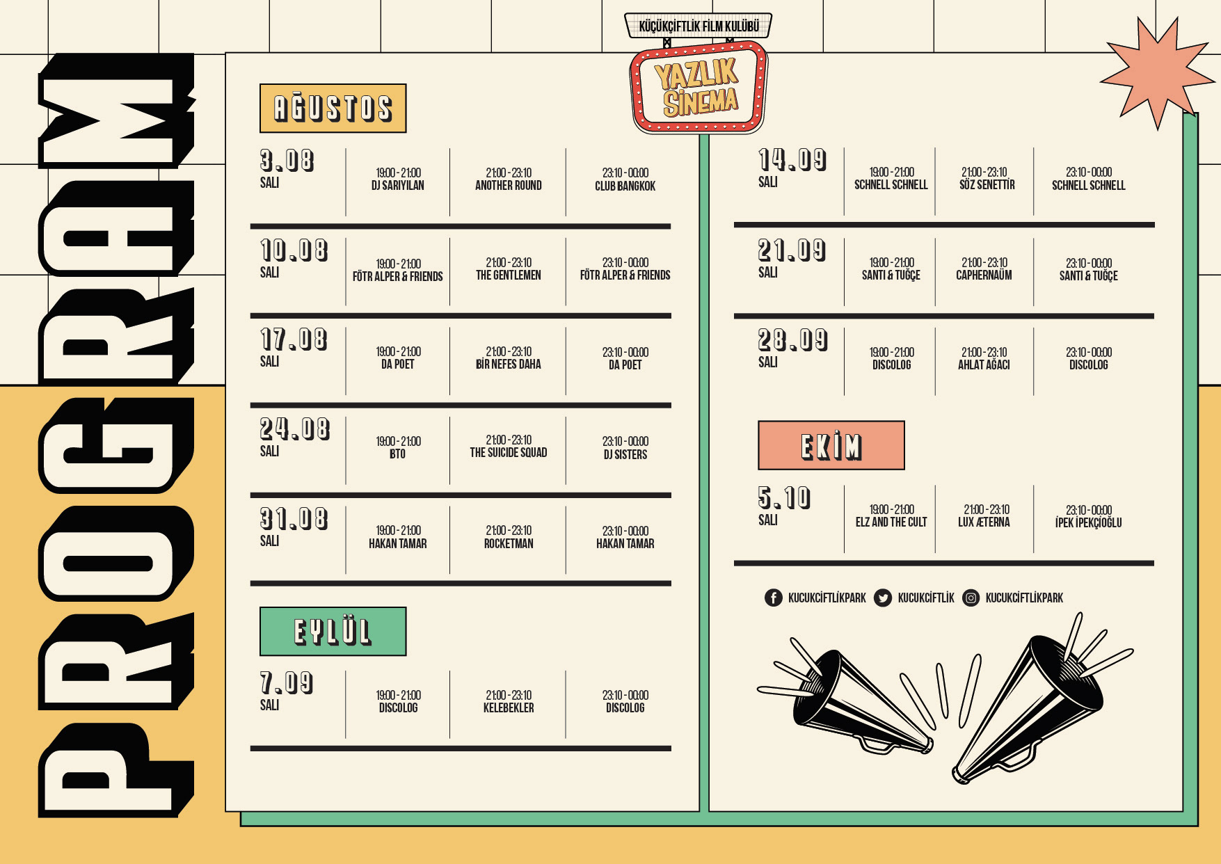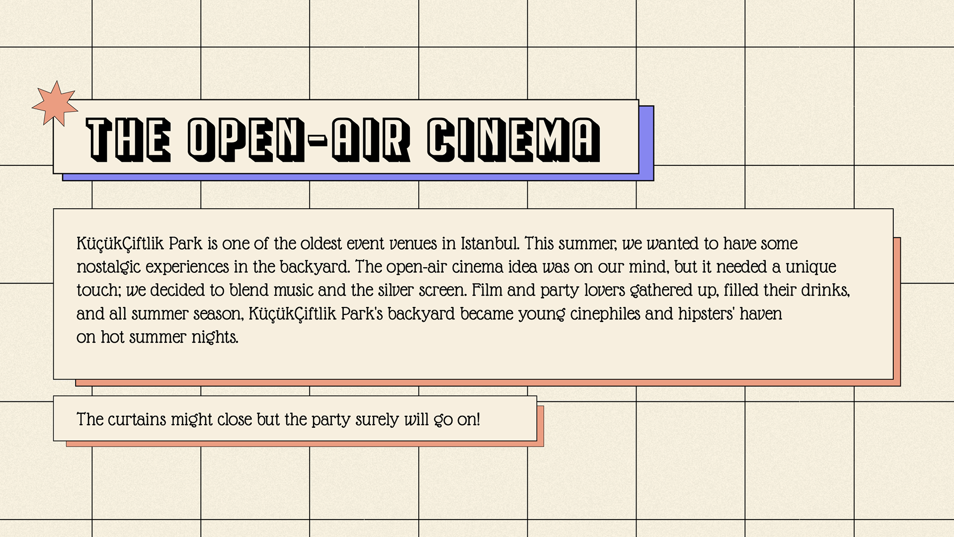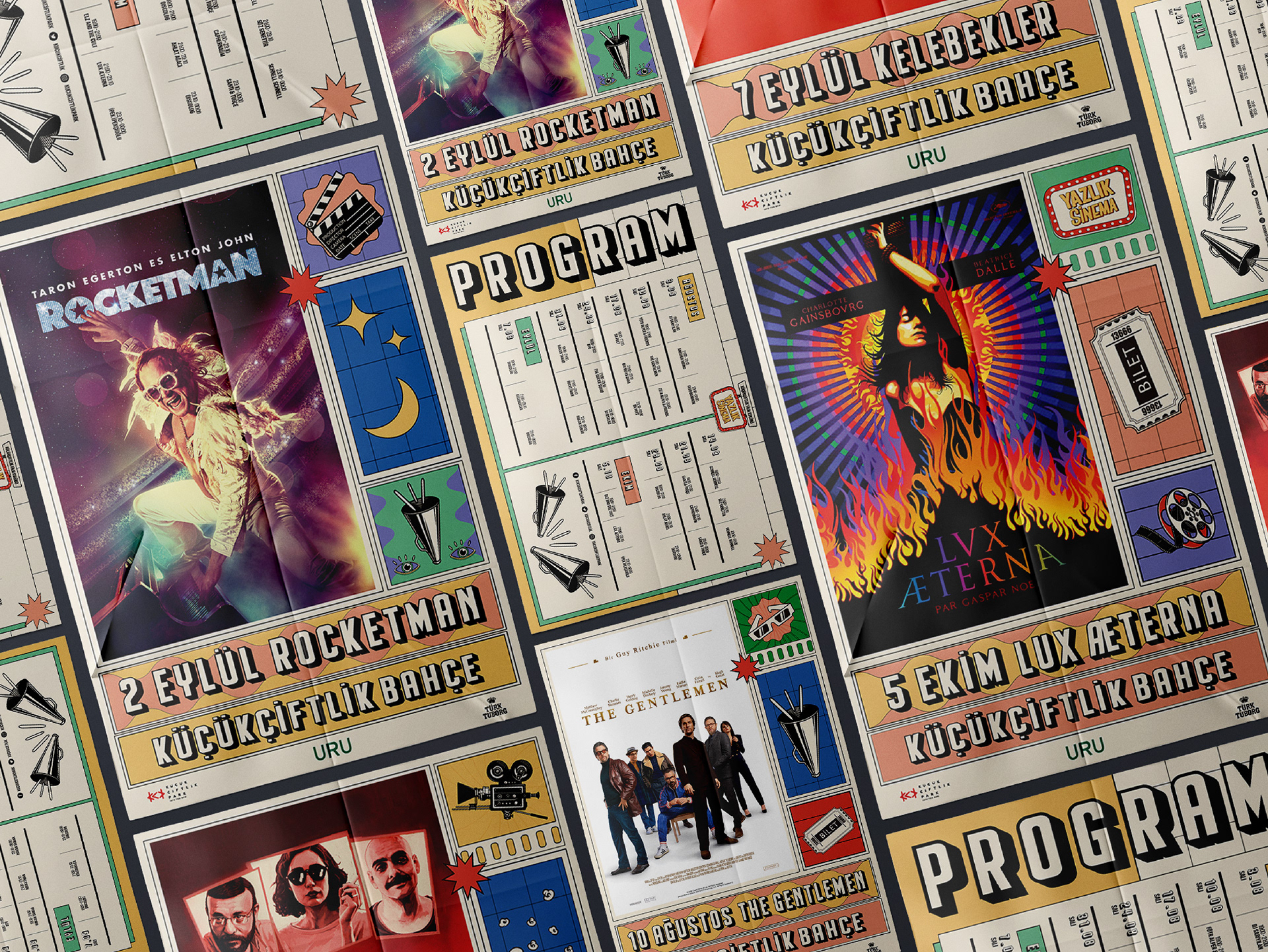 Open-air Cinema Festival Branding was inspired by the nostalgic era of the 50s and 60s color palettes. The graphic elements were mixed with a playful way of simple geometric shapes.
