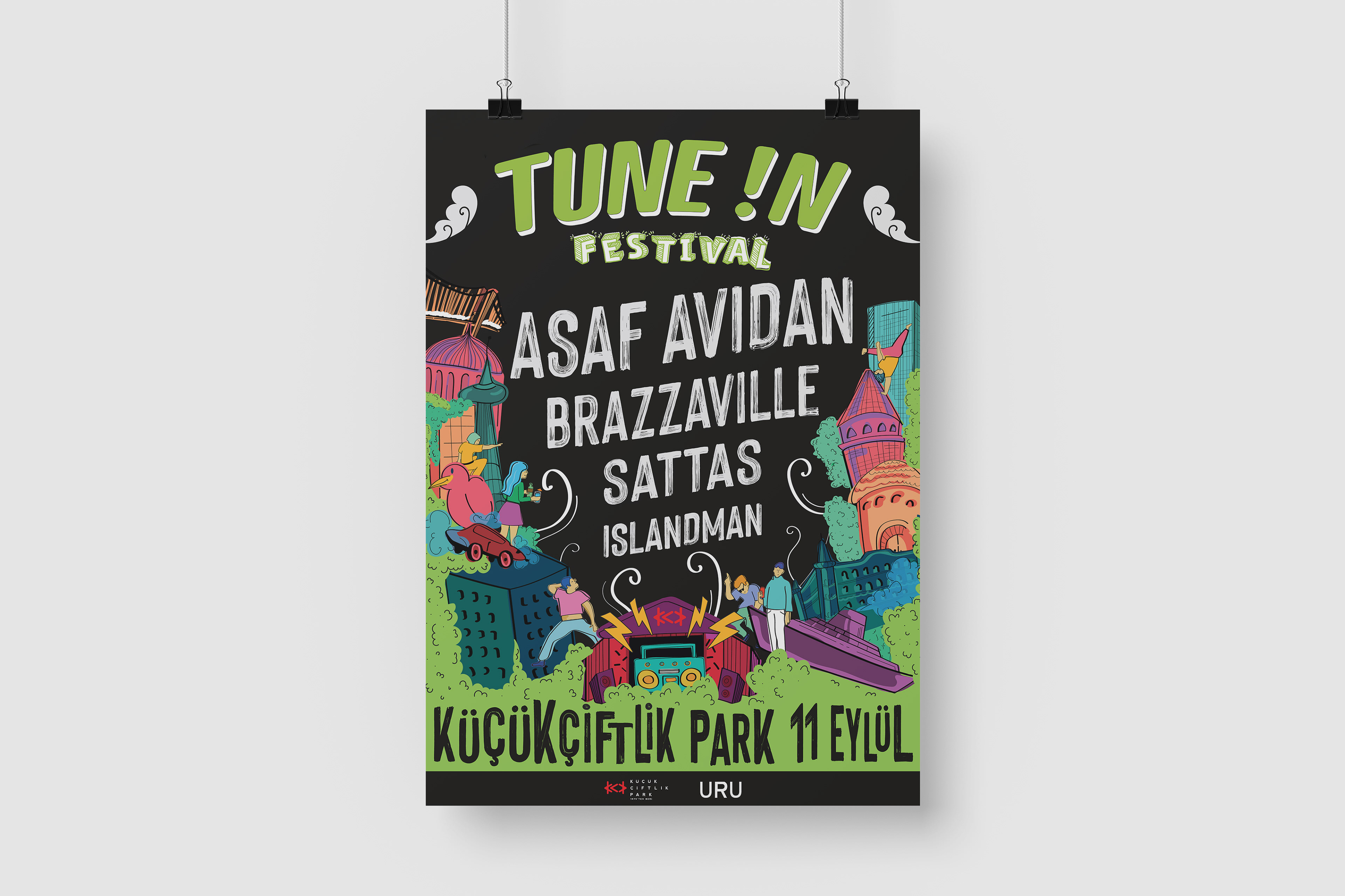 As the city gets hot in summer, the bathing season begins. All the local people of Istanbul migrates to the southern part of the country, visiting their summer house, having long vacations until September arrives.It is always sad to leave summer behind and get back to our school, work and city life. The main target audience of this project was young people, students, new workers. At this festival we were welcoming back all the locals to a new season, and reminding them that the fun still continues! Thus, I was inspired by Istanbul's landmarks, the rush hour, congested buildings, seagulls, ferries and tried to interpret in a cartoony way by illustration.